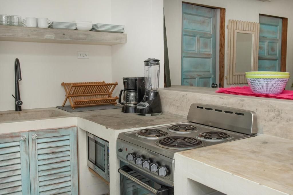 Villa 1 at Babylon Beach Resort is a ground-floor villa offering a private terrace with stunning ocean views. This unit accommodates 6 guests across 3 bedrooms with 3 king-size beds and a sofa bed, plus 2 bathrooms. Located steps from the town center, it features a full kitchen, air conditioning, free Wi-Fi, and beachfront access, ensuring a memorable Belizean getaway. Villa 1 is Ground floor.