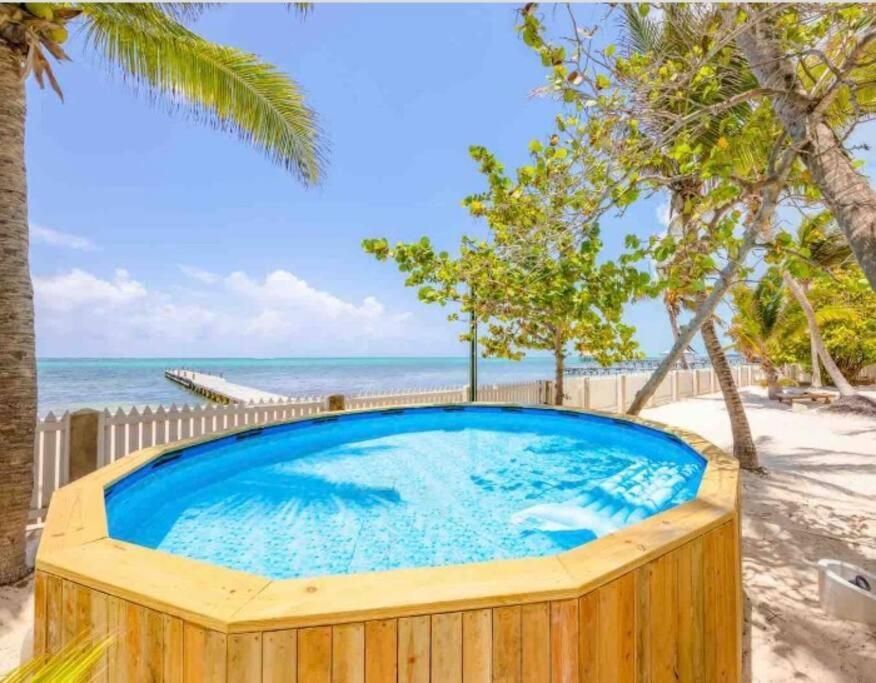 Villa 5 at Babylon Beach Resort is a ground-floor villa offering a private terrace with stunning ocean views. This unit accommodates 4 guests across 2 bedrooms with 2 king-size beds and a sofa bed, plus 1 bathroom. Located steps from the town center, it features a full kitchen, air conditioning, free Wi-Fi, and beachfront access, ensuring a memorable Belizean getaway. Villa 5 is Ground floor.